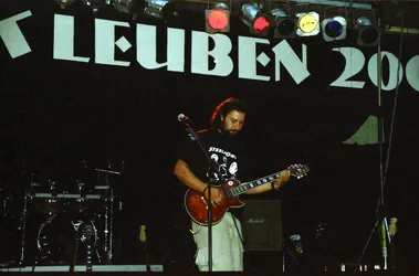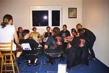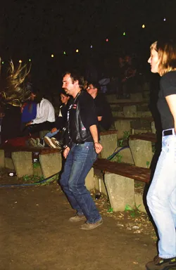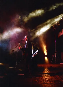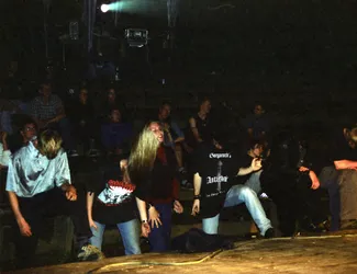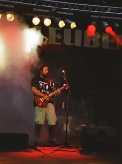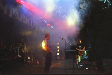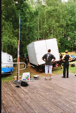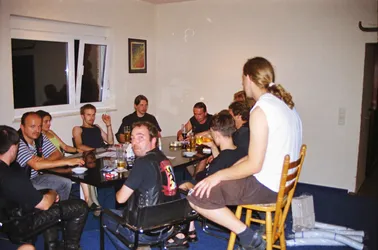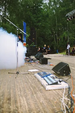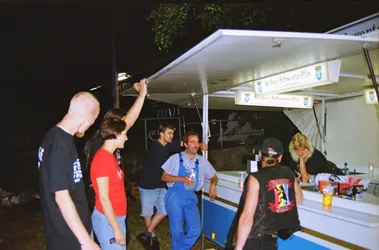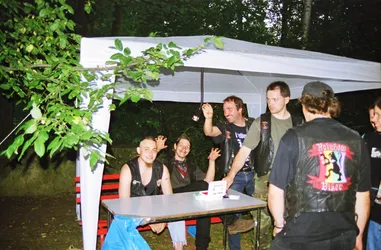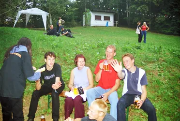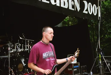 Schade wenn nach so langer Zeit kaum noch Erinnerungen wach geblieben sind. Es war das erste Jahr mit professioneller Licht- und Tontechnik. 2 Drumsets wurden nebeneinander aufgebaut und zugleich abgenommen, Wahnsinn! Es waren fast ausschließlich Local Heros anwesend: Last Sunset, Curriculum Vitae, Ann Spitfire, Blue Sin und Steelpower. Den größten Teil der Bands gibts schon gar nicht mehr - schade eigentlich. Die Atmosph äre war jedenfalls 2001 genial. Es war nicht zu heiß und nicht zu kalt, auf jeden Fall aber trocken. Das Aggregat, welches wir dieses Jahr zum ersten mal brauchten, stand wie auch heute in der Nähe der Bühne, aber es war nicht besonders schallged ämmt, was schon nervte, aber mit Beginn der Live-Musik kaum jemanden mehr störte. Steelpower (aus Hartha glaub ich) begannen mit witzigen, leicht anzüglichen PunkRock-Songs. Danach enterten Blue Sin mit ihrem druckvollem, mehrstimmigen und auch eigenwilligen Rock die Bühne. Es war einer der ersten Auftritte der Band, aber schon hier zeigte sich das diese Musiker in Zukunft eine wichtige Rolle in der Region spielen werden. Die nächsten 3 Bands zeigten durch und durch Covermusik, bis auf Ann Spitfire und auch Curriculum Vitae die auch zwischendurch eigene Sachen spielten. Last Sunset hatten sich ganz der Musik von Metallica verschrieben was den Headbangern für der Bühne die ideale Möglichkeit gab, sich ordentlich gehen zu lassen. Wieder ein RIPL was bei den G ästen einen bleibenden Eindruck hinterlies.