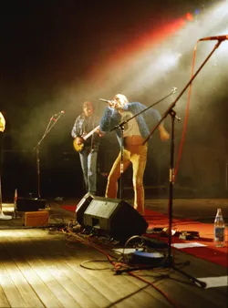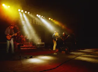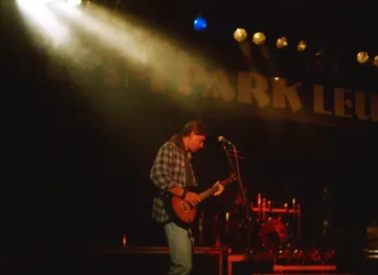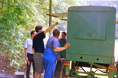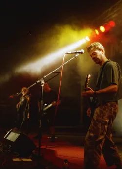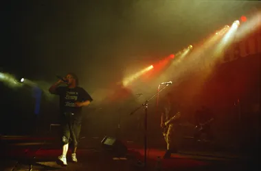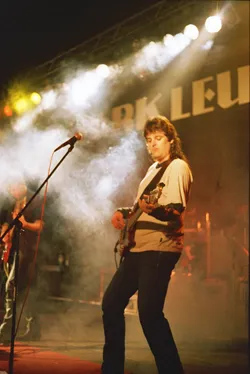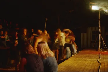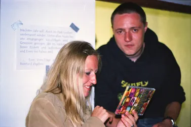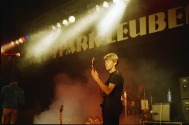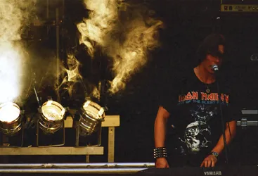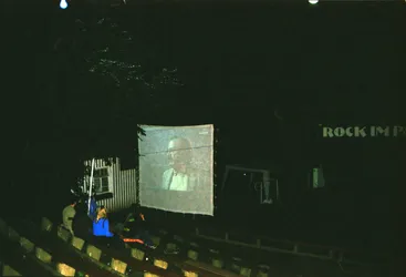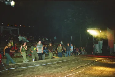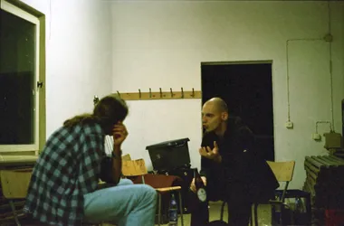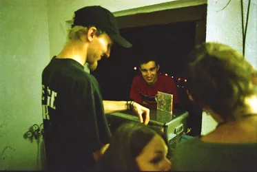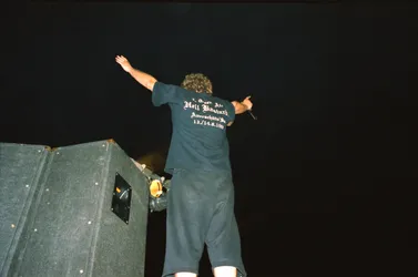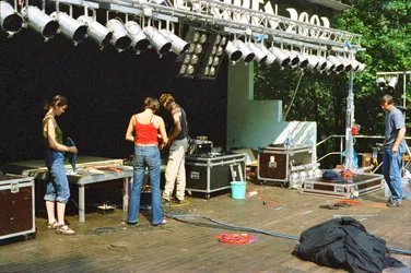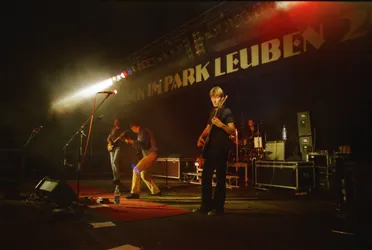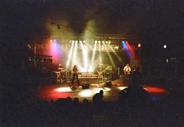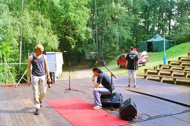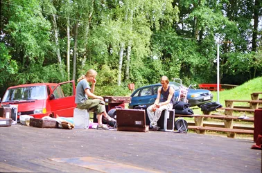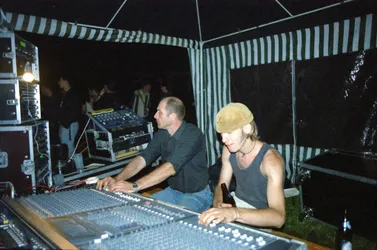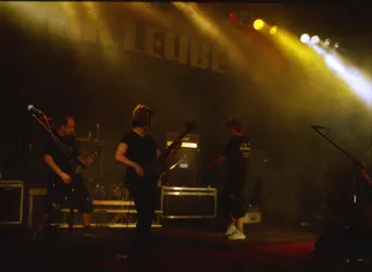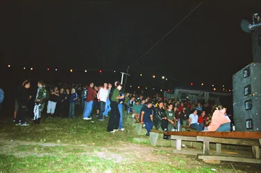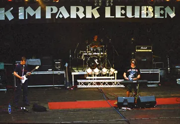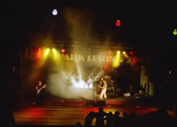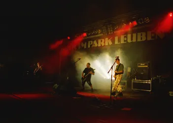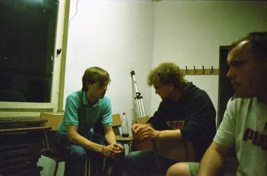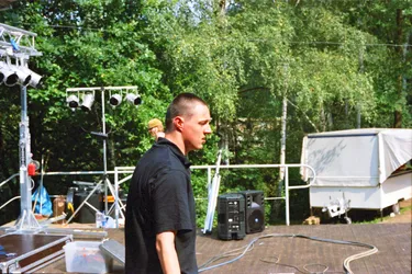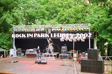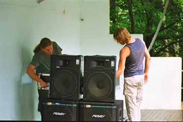 Ich erinnere mich, wie wir mit dem Bus der Kirchgemeinde Lommatzsch an dem irgendwie das Nummernschild abgefallen war, in Roßwein an hunderten Soldaten und Polizisten vorbeifuhren. Keine Sau juckte das, die hatten weiß Gott wichtigeres zu tun als Autos mit fehlenden Nummernschilder anzuhalten. Die Erlösung brachte letztlich die Info, das jemand in seiner Scheune noch so ein Teil rumstehen hat, allerdings ist das wohl schon seit Jahzehnten nicht mehr gelaufen. Als es dann in Leuben ankam, staunten wir nicht schlecht. Das Ding war größer als wir dachten und machte auch sonst einen eher archaischen Eindruck. Am Anfang lief erstmal gar nix. Heiko und ein handvoll Leute nahmen sich das Teil zur Brust und schraubten wohl den ganzen Nachmittag dran herum. R.I.P.L. stand immer noch auf der Kippe. Strom für die P.A. hatten wir, aber es hätte passieren können, das ein Baustrahler auf die Bühne gestanden hätte, damit man auch die Bands sieht. Die Zeit wurde knapp und wir mußten den Anfang um 2h verschieben, weil wir ja immer noch keinen Strom hatten. Gegen 18:00 Uhr war es dann soweit: Das Ding erzeugte Strom, irgendwie. Nur wußte keiner wieviel und wie lange. Aber in solchen Momenten sollte man auch schonmal Vertrauen haben.
