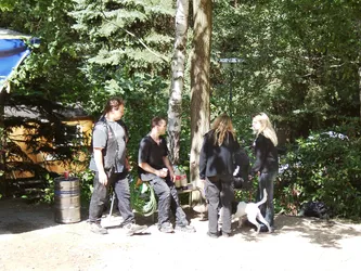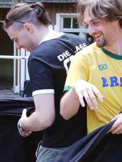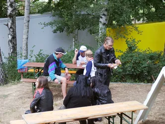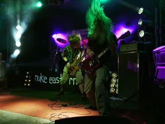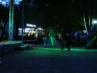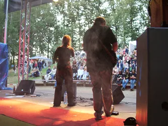 Beim Auftritt der Leipziger Nu-Mettler „Nuke Eastern Plot" fing es wieder leicht an zu regnen. Frontmann Max lies es sich nicht nehmen, sich ernsthaft bei Petrus zu beschweren und ihm die Gesamtsituation mitzuteilen. Die Fans stimmten mit ein! In dem Moment war es dann wohl geschehen. Jetzt war Rock´n´Roll angesagt. Kurze Regenschauer waren den Leuten ab sofort egal. Sie waren hier um zu feiern, zu tanzen und laute Musik zu hören! Bei „The Roosters" drohte der Platz vor der Bühne zum Tanzen schon nicht mehr auszureichen. Die Stimmung war jetzt am Kochen. Doch die Hauptband kam ja noch. Als Mutabor aus Berlin gegen 23:30 Uhr die Bühne betraten, gab es kein halten mehr. Nach ganzen 2 ½h und mehreren Zugaben war ein großartiges Konzert und eine große Veranstaltung zu Ende.