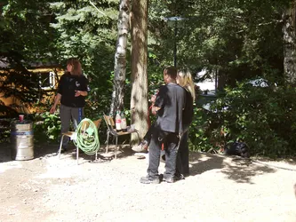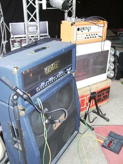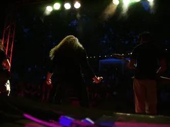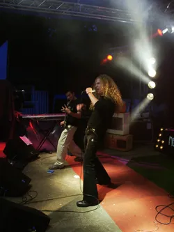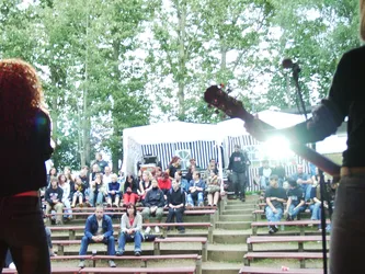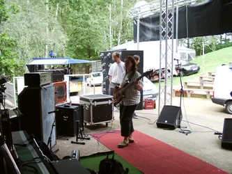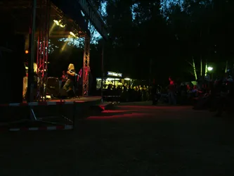 Dieses Jahr viel zum ersten mal das Wort Großveranstaltung und Kommerzialisierung. Viele der Besucher schätzen die friedliche und unkonventionelle Atmosphäre in Leuben und wollen, dass dies natürlich so bleibt. Die Veranstalter unterstützen diesen Wunsch. Wie man beim jährlich stattfindenden Sommernachtsball sieht, verkraftet die Anlage locker Besucherzahlen knapp im 4stelligen Bereich. Obwohl man sich sicher gern über mehr Gäste freuen würde, soll das ganze auch überschaubar bleiben. Punkte wie Sicherheit oder sanit äre Einrichtungen müssten dann einen viel höheren Stellenwert bekommen. Dieses Jahr zeigten die Veranstalter, wie eine perfekte Organisation auszusehen hat. Ohne Zwischenfälle, reibungsloser Programmablauf auf der Bühne, die kostenlose Bereitstellung der Zeltplätze usw. Als pünktlich 18:00 Uhr die Riesaer Nachwuchsband „Splenders" die Bühne betraten, waren die Ränge noch spärlich besetzt, was sich im Laufe deren Auftrittes aber ändern sollte. Ihre leichte Rockmusik mit dem perfekten mehrstimmigen Gesang machte den Besuchern Lust auf mehr. Danach stand „Taylor´s Talk" allein mit seiner Akustikgitarre für 45min auf der Bühne. Noch nie vorher gab es beim Rock im Park Leuben einen Solokünstler. Sein Auftritt passte aber gut ins Konzept, die Sonne zeigte sich, und zauberte endlich die richtige Festival-Atmosphäre auf das Gelände. Die Lommatzscher „Result of Differences" boten dann wieder Cover-Versionen bekannter Titel meist aus dem PopRock Bereich.