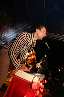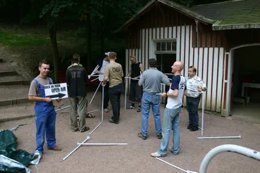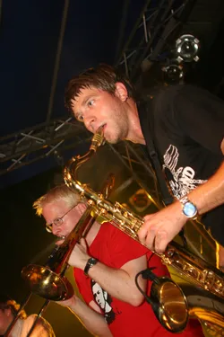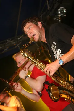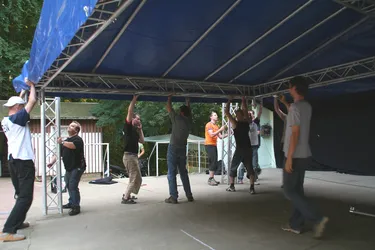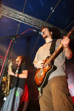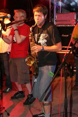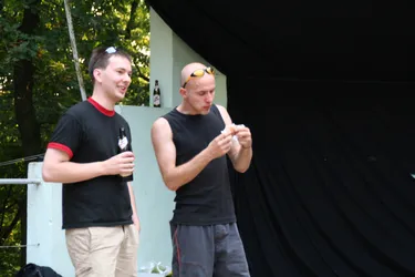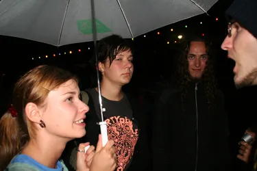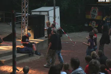 Das siebente Rock im Park Leuben sollte wieder eine Menge Musikfreunde in den Park in Leuben locken. Fünf Bands (Clints, BlumentoPferde, Killjoy, Wisecräcker und Robert and the Roboters) sollten aufspielen. Wie jedes Jahr wurde die Bühne am Freitag von fleissigen Helfern aufgebaut. So stand der Party am Samstag nichts mehr im Wege.Zum ersten Mal wurde eine internationale Band geladen. Killjoy aus Südtirol brachten nicht nur Power auf der Bühne, sondern auch auf dem Fussballplatz. Sie und mutige Helfer und RIPL-Freunde verausgabten sich vorm Rocken auf dem Hartplatz in Leuben. Das Spiel ging zugunsten der Mannschaft mit italienischer Beteiligung aus.Der Abend kam und die erste Band betrat nach einer kurzen Einstimmung des Moderators Ralf die Bühne. Die Clints stimmten, als einzige Band mit weiblicher Begleitung den Abend ein. Danach hielt es der Wettergott wohl nicht mehr aus und beregnete den Platz. Trotzdem trafen Die BlumentoPferde mit ihrem punkigen Sound den Nerv der Jugend und so wagten sich einige auf die Tanzfläche, um durch Haareschütteln dem Regen zu trotzden. Killjoy verstärkten dies nochmal und legten mit popigen Riffs und treibenden Melodien noch einen Zahn zu. Das Motto "Wir tanzen gegen den Regen", schien den Zuschauern zu gefallen. Der Regen nahm zu und Wisecräcker versuchten mit Ska-Reggae-Rock zu kontern. Abermals war tanzen angesagt und dies taten die Zuschauer. Allerdings lichteten sich die Reihen merklich, was aber der Stimmung keinen Abbruch tat. Die letzte Band des Abends (Robert and the Roboters) konnten mit ihrem instrumentalen Surf-60s-Sound überzeugen. Der Geheimtipp aus Dresden begeisterte mit ihrem Sound und brachte den Abend zu einem würdevollen Abschluss. So kann man sagen, dass das Rock im Park Leuben Festival auch dem Regen trotzt. Bandauswahl und Organisation waren klasse und machen Lust auf mehr. Und auch wenn nächstes Jahr ein Schneesturm losbrechen sollte, den Rock kann wohl nichts stoppen. In diesem Sinne bis zum 8. Rockn im Park Leuben und ein Dank an Veranstalter, alle Helfer und Bands