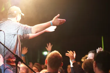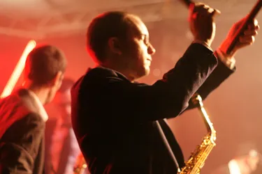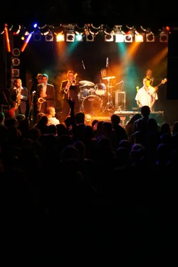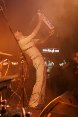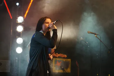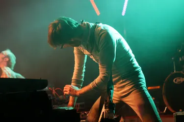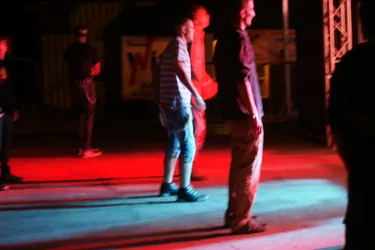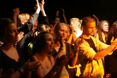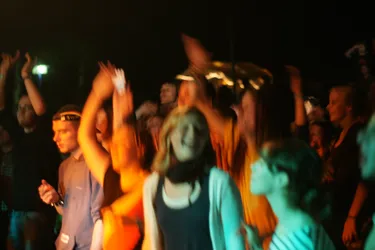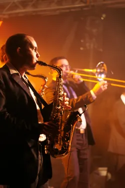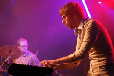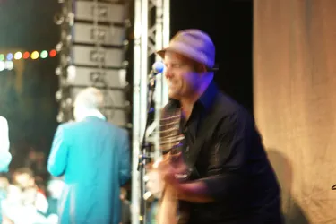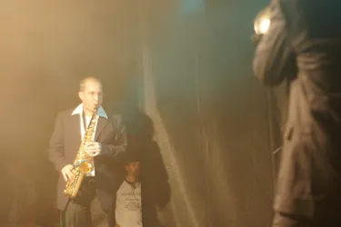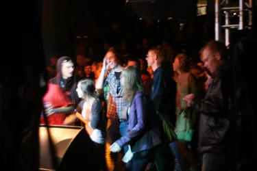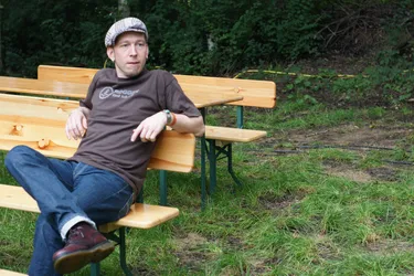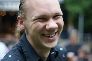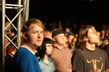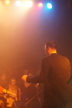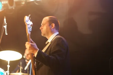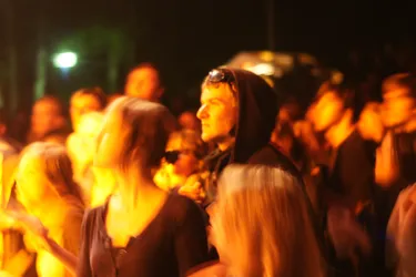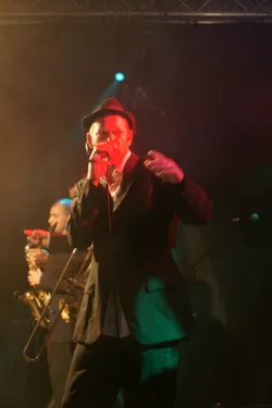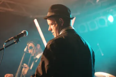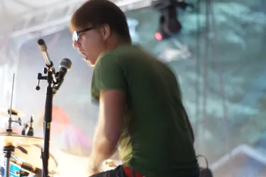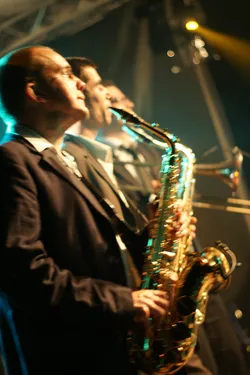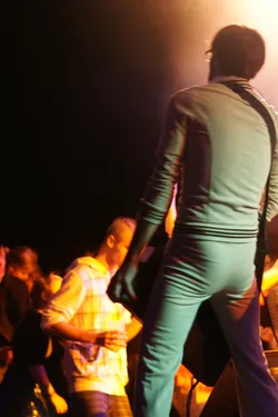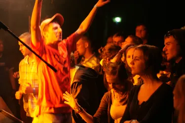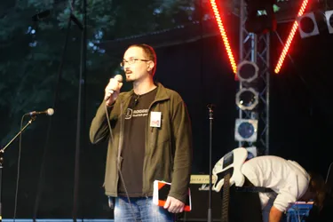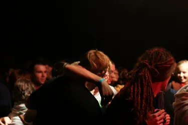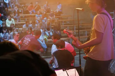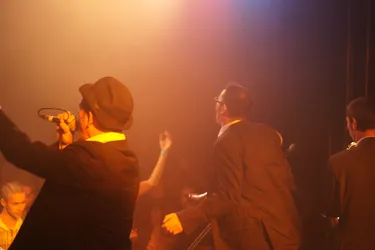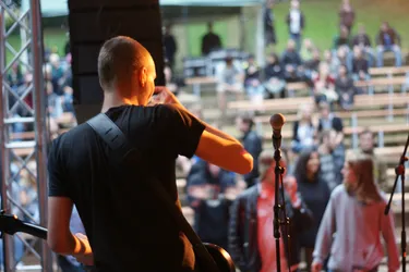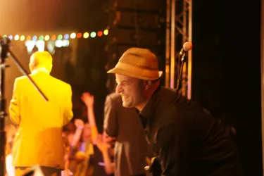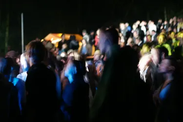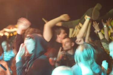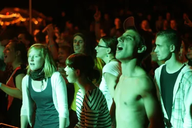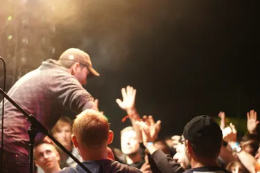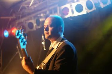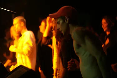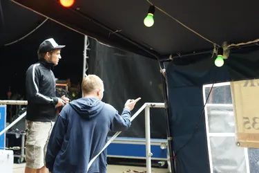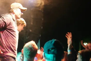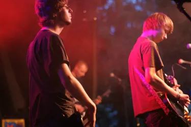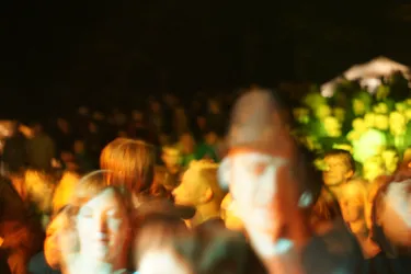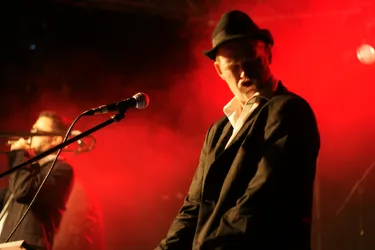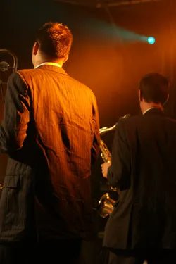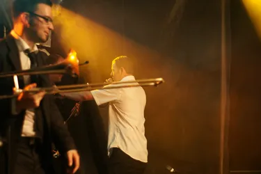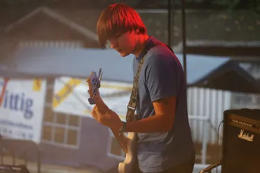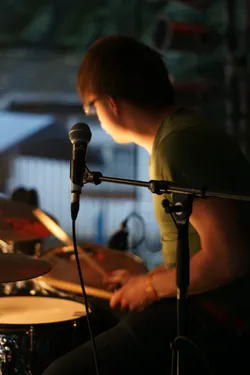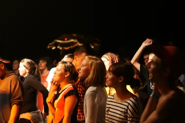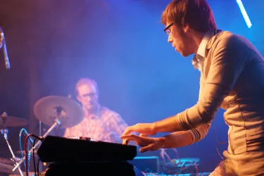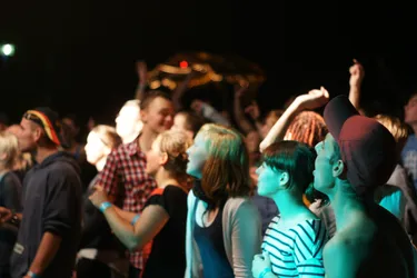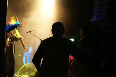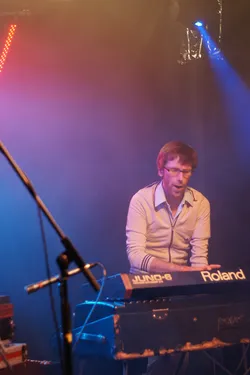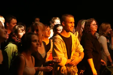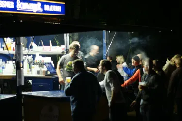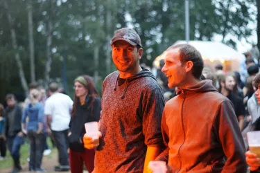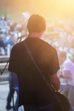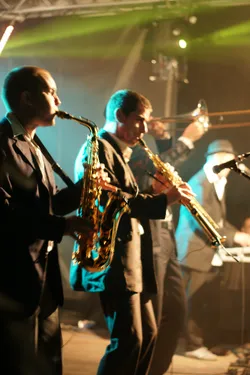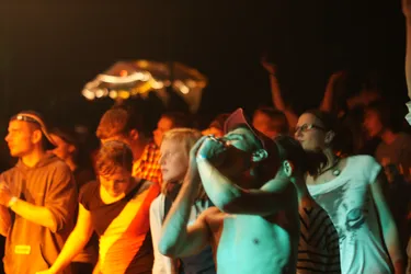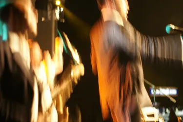 Noch während des Soundchecks erzählt Jens Strohschnieder am Bühnenrand die Geschichte von einem Festival mit ähnlich cooler Lage: ein Amphitheater an einem steilen, grasbewachsenen Hang im Ruhrpott. Bei Regen sei die Band dort in voller Montur, also in schwarzen Anzügen und weißen Hemden auf der schlammigen Wiese herumgetollt und den ganzen Hang im Schlamm heruntergerutscht. „Der Hang hier hat also noch sehr viel Potenzial!" sagt er mit schelmischem Blick auf die steile Wiese in Leuben, auf deren oberen Rand die Lichterkette mit den bunten Partylichtern vergnügt im Takt der Musik wackelt.