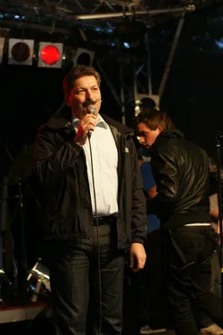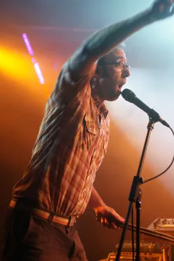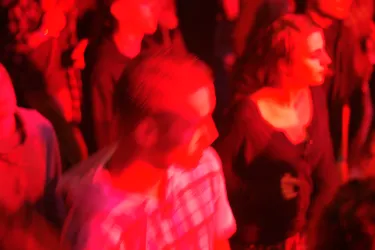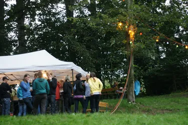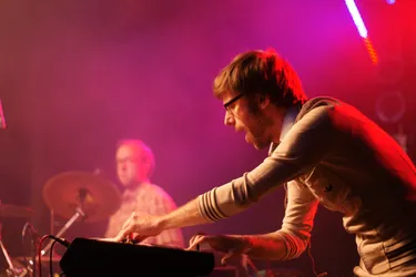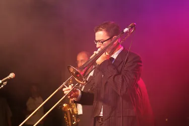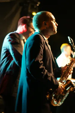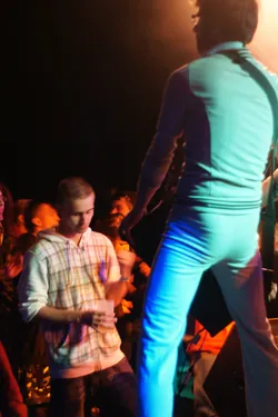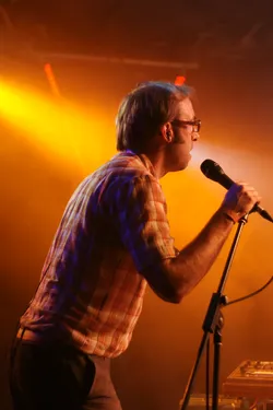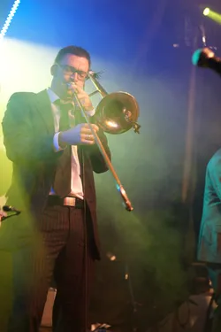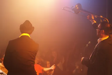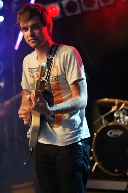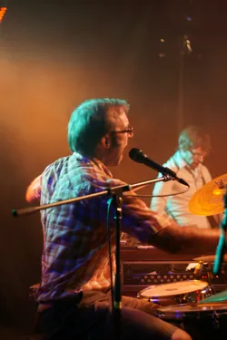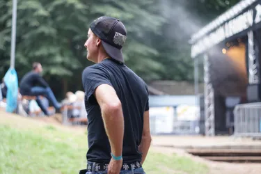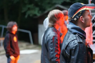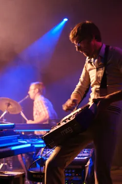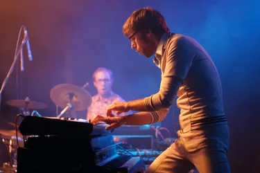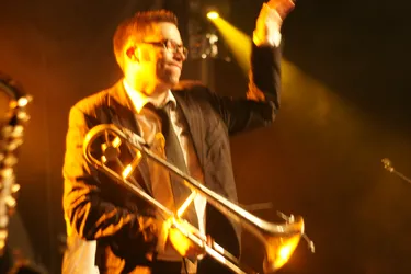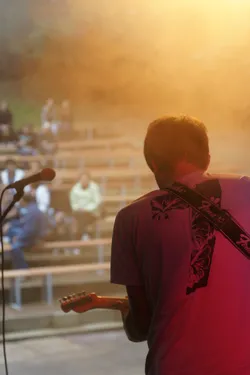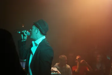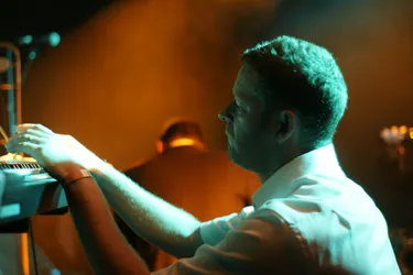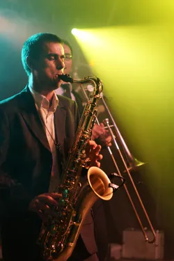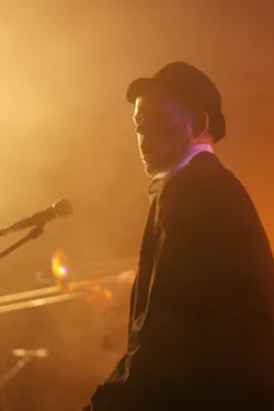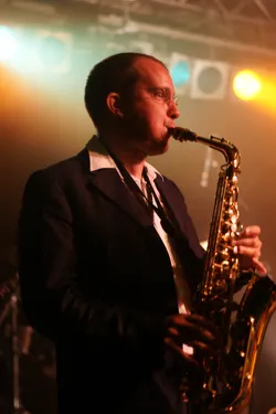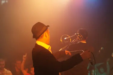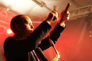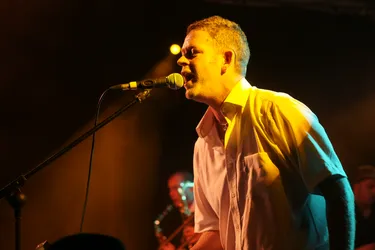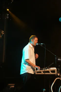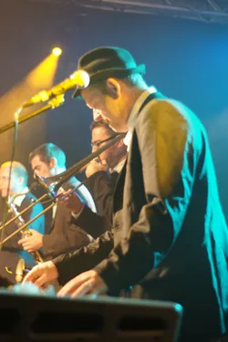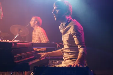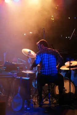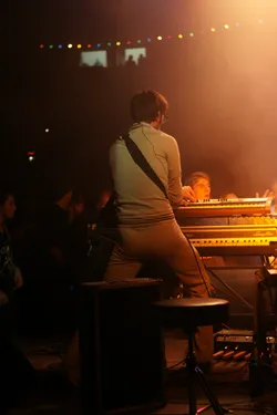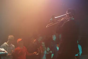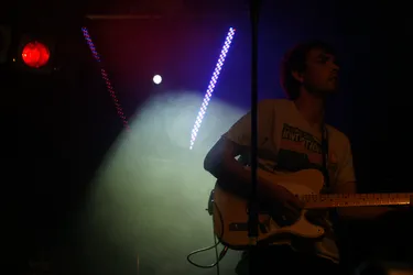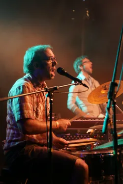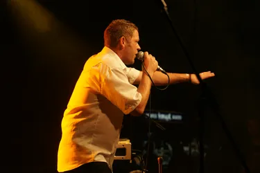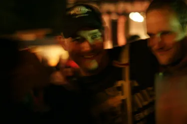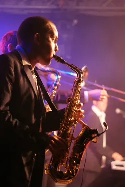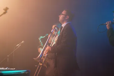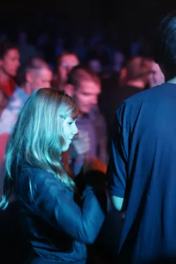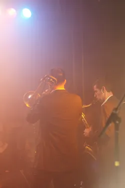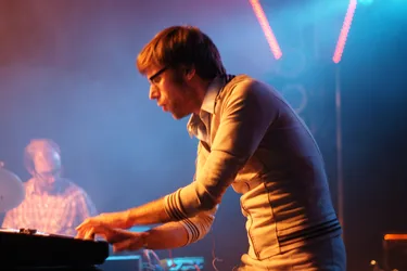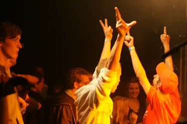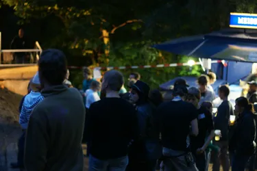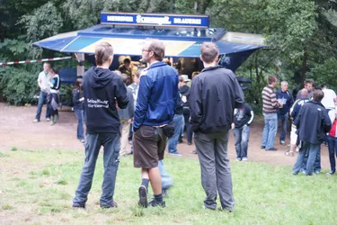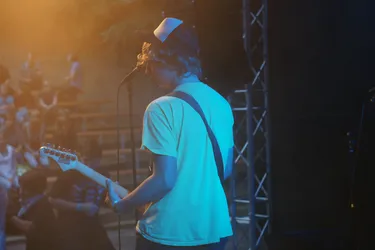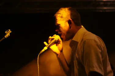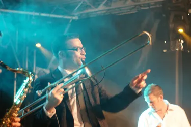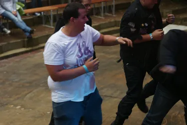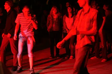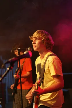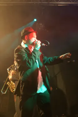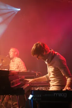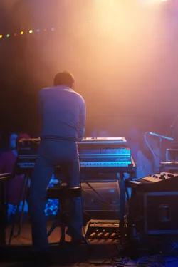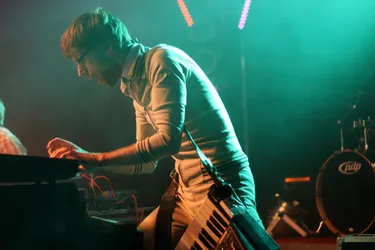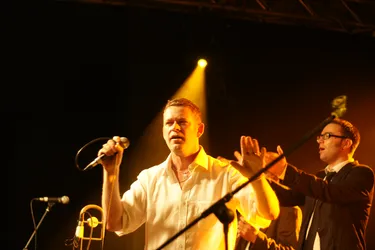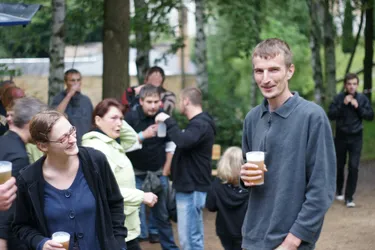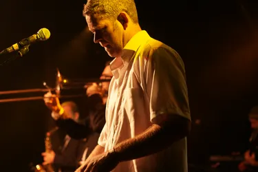 Noch während des Soundchecks erzählt Jens Strohschnieder am Bühnenrand die Geschichte von einem Festival mit ähnlich cooler Lage: ein Amphitheater an einem steilen, grasbewachsenen Hang im Ruhrpott. Bei Regen sei die Band dort in voller Montur, also in schwarzen Anzügen und weißen Hemden auf der schlammigen Wiese herumgetollt und den ganzen Hang im Schlamm heruntergerutscht. „Der Hang hier hat also noch sehr viel Potenzial!" sagt er mit schelmischem Blick auf die steile Wiese in Leuben, auf deren oberen Rand die Lichterkette mit den bunten Partylichtern vergnügt im Takt der Musik wackelt.