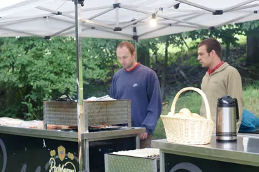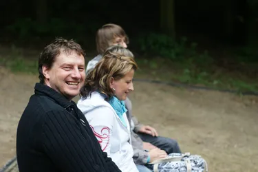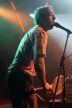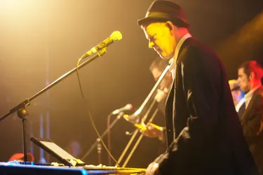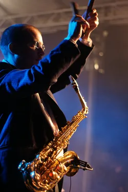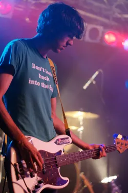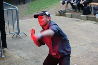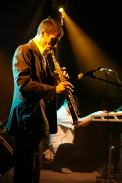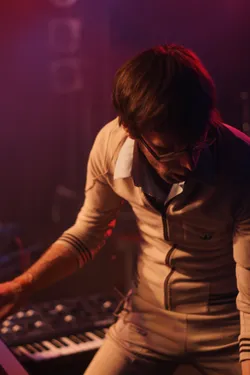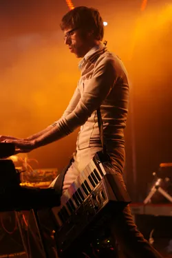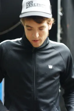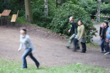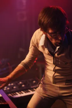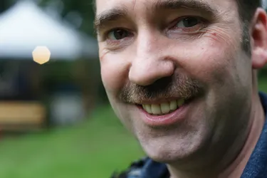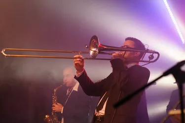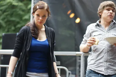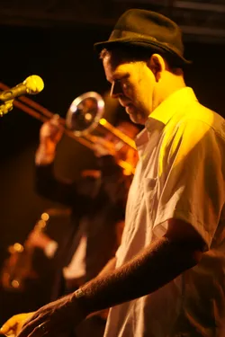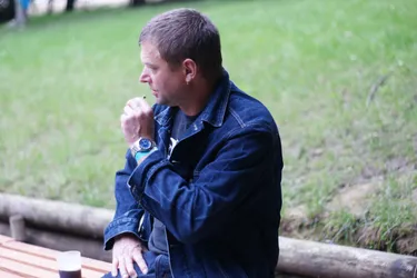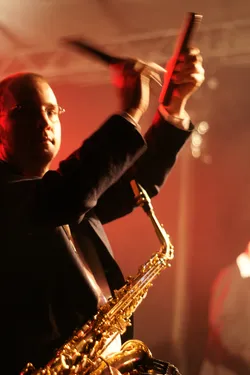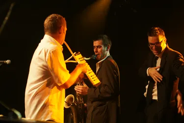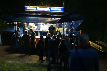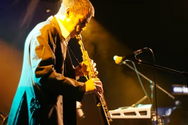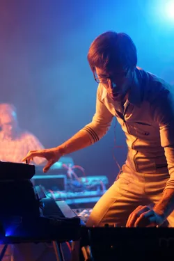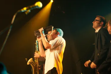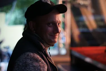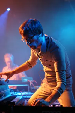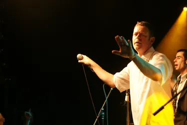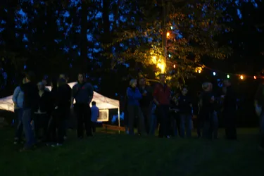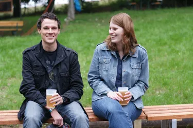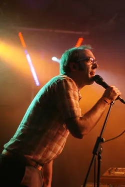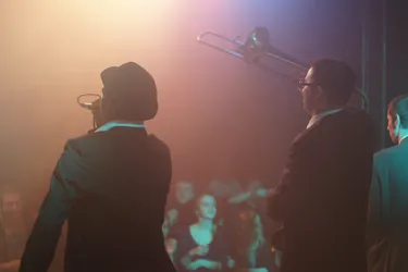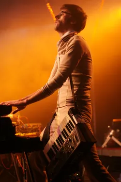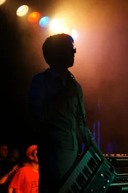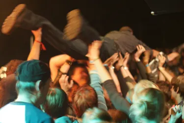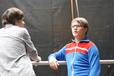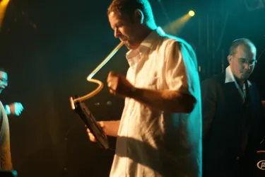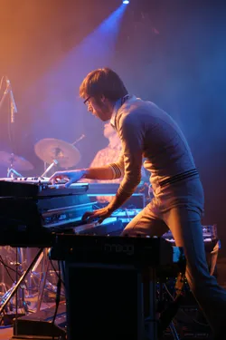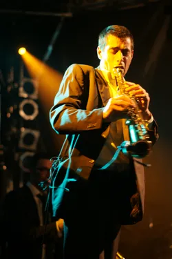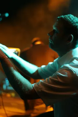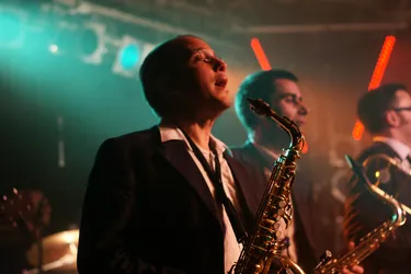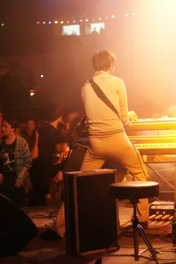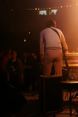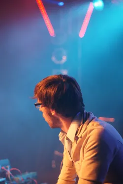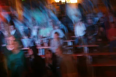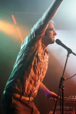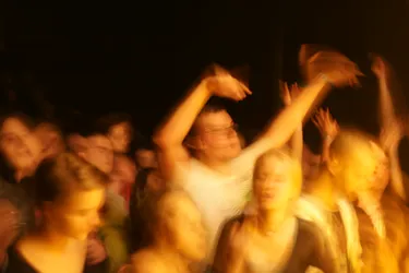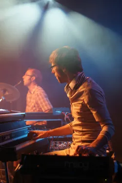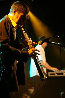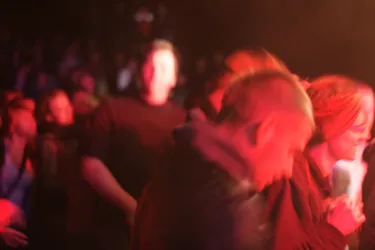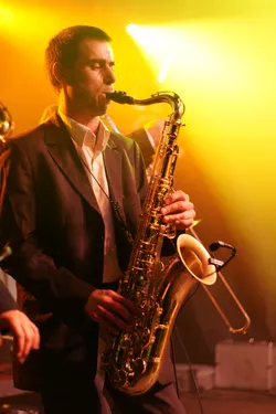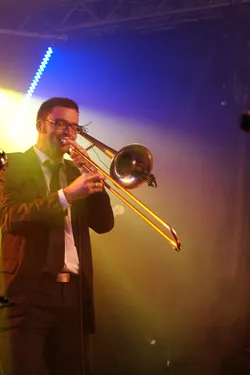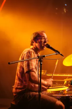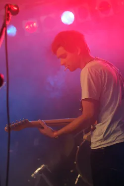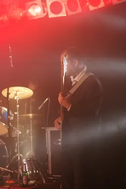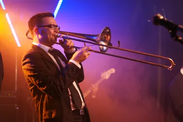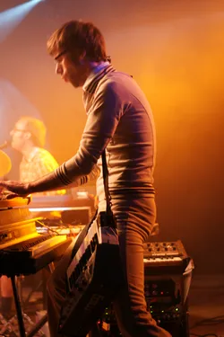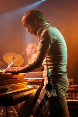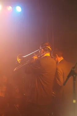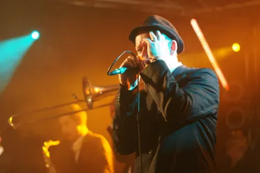 Noch während des Soundchecks erzählt Jens Strohschnieder am Bühnenrand die Geschichte von einem Festival mit ähnlich cooler Lage: ein Amphitheater an einem steilen, grasbewachsenen Hang im Ruhrpott. Bei Regen sei die Band dort in voller Montur, also in schwarzen Anzügen und weißen Hemden auf der schlammigen Wiese herumgetollt und den ganzen Hang im Schlamm heruntergerutscht. „Der Hang hier hat also noch sehr viel Potenzial!" sagt er mit schelmischem Blick auf die steile Wiese in Leuben, auf deren oberen Rand die Lichterkette mit den bunten Partylichtern vergnügt im Takt der Musik wackelt.