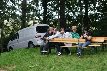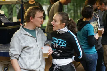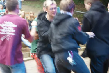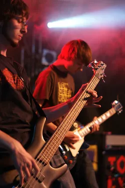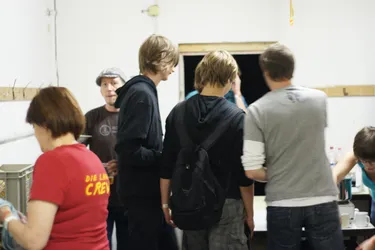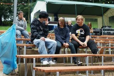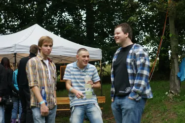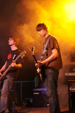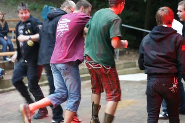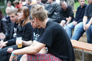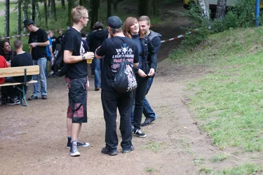 Der Rock-im-Park-Leuben e.V. und der Mittelsächsische Jugendverein fördern viele junge Nachwuchsbands aus der Region. Beinahe ein Denkmal für diese Aufgabe ist der Proberaum in der Alten Schule in Rüsseina, der im Laufe der Jahre schon viele Bands gesehen und gehört hat. Eine dieser Bands ist „Zimmer 3", oder, wie sie sich kurz entschlossen umbenannten: „Falschgeld". Sie spielen Punk und gaben in Leuben ab neunzehn Uhr auf der Bühne alles, ob Klischee oder nicht.