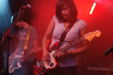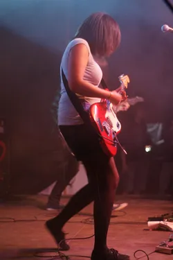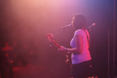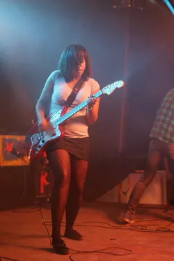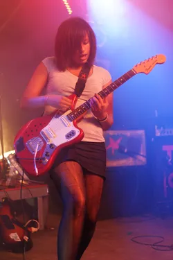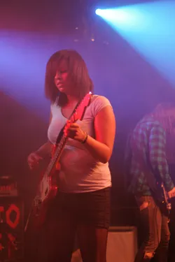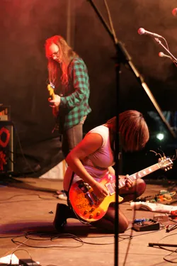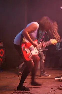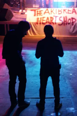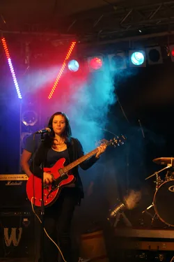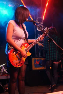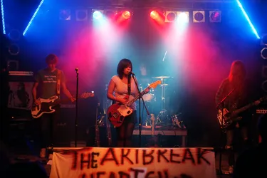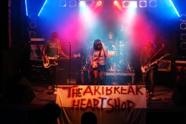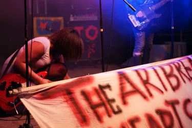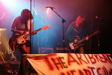 Die Band „The Artbreakheartshop" aus Dresden sind so, wie Sonic Youth jetzt leider nicht mehr sind. Sie sind wild, wütend und schräg, Krach ist nicht routiniertes Stilmittel sondern hat bei ihnen noch wirklich was zu bedeuten. Und auf dem „Rock im Park Leuben" 2010 machen sie von Anfang an klar, was Sache ist. Sängerin und Gitarristin Oyemi windet sich in den Noiseorgien, als würde sie gleich Feuer speien. Sie kreischt und schreit, singt und flüstert und findet immer wieder auf verblüffende Weise zum perfekten Zusammenspiel mit der Rythmsection und dem Gitarristen Lemmy zurück. Dessen Gitarre gibt den Wechsel von brachialen Soundgewittern zu berückenden Melodien und Gitarrensoli vor. Die wilde Grungemähne schleudert er im Takt und verschanzt sein Gesicht komplett hinter dieser Strähnenwand. Es leben die Neunziger! Auf ewig! Mit leichter Verspätung kommen The Artbreakheartshop auf die Bühne und stellen gleich mit einem wunderbaren Cover des Sonic-Youth-Songs „100%" die Weichen für die folgenden vierzig Minuten.