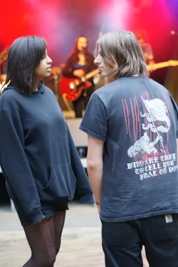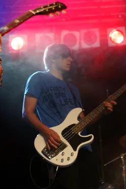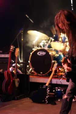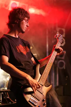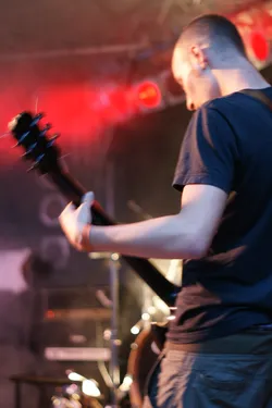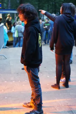 ...standen ab zwanzig Uhr beim „Rock im Park Leuben" auf der Bühne. Sie brachten brettharten und punktgenauen Stonerrock mit, kompromisslos, schwer und laut. Hier standen Bands wie beispielsweise Fu Manchu Pate, die dem Genre vor allem in den späten Neunzigern neues Leben einhauchten. Das Publikum und die Kollegen anderer Bands konnten sich den knallharten Argumenten dieser Musik nicht entziehen. Überall standen Menschen breitbeinig mit den Händen in den Hosentaschen da und nickten leicht mit dem Kopf zum fetten Takt der Musik - ein Vorspiel für späteres Headbangen. So verzieh das Publikum der Band gern, dass sie den Zeitplan ihres Auftrittes sprengten. Musik ist halt Musik und Zeitpläne eine ganz andere Sache.
