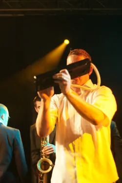 Auf dem „Rock im Park Leuben" 2010 behielten „Yellow Umbrella" die gelben Regenschirme drinnen und ließen dafür die Sau raus. Fast zwei Stunden spielte die Band ihre Songs aus Ska-, Clezmer- und Reggaeland. Sänger und Frontmann Jens Strohschnieder hält die tanzende Menge in den Händen und dirigiert sie von einem Song in den nächsten, gemeinsam erleben sie einen scheinbar endlosen Partyrausch. Mitten im Rhythmus schält sich Jens Strohschnieder aus seinem schwarzen Jackett, tanzt mit entrücktem Lächeln im lässig zerknautschtem Hemd weiter und haut ein paar karibische Akkorde in die Tasten. Die Leute vor der Bühne danken es mit Applaus und Tanzwut.